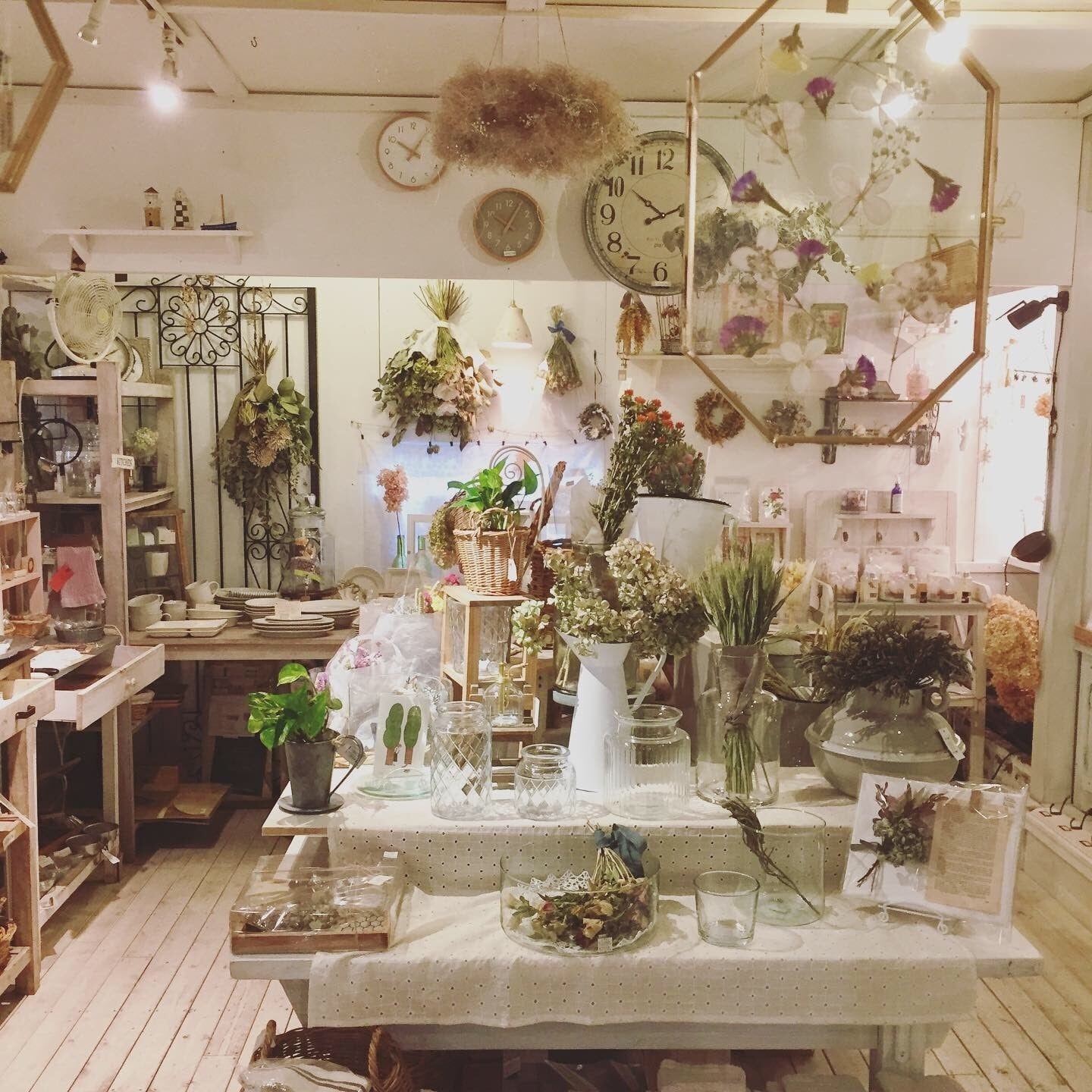 生花から作っているドライフラワーにプリザーブドフラワー、自然素材などを使ってお店の3階でハンドメイド商品を作製しています。
